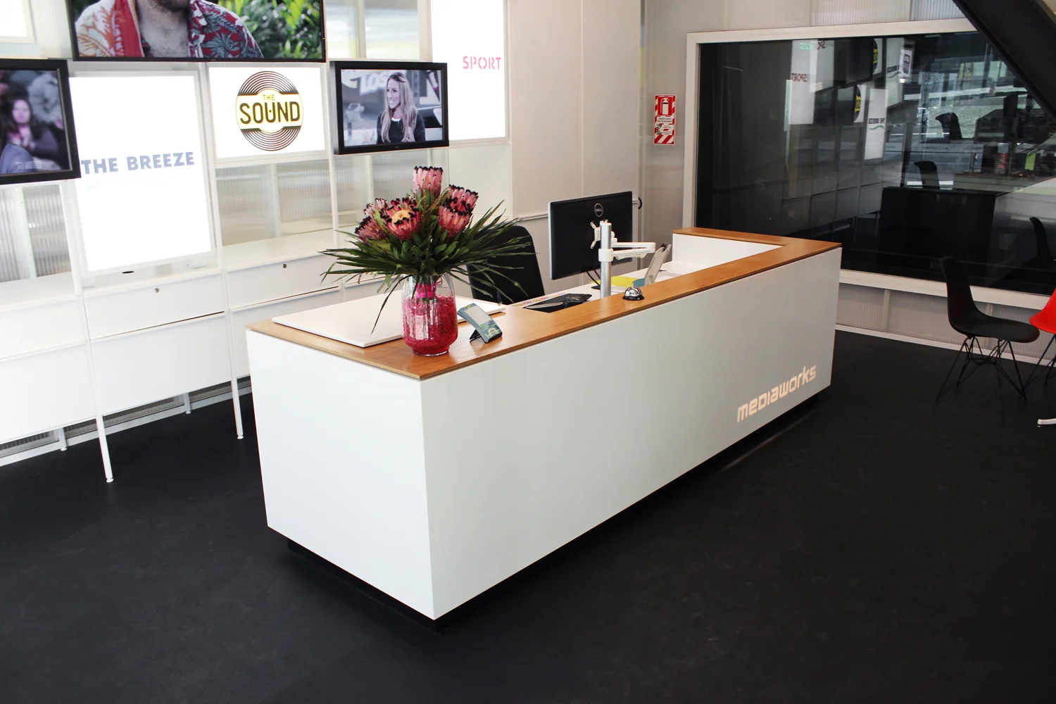 Reception & Counter-tops can be made from the following interior surfaces. Please click below for more info.